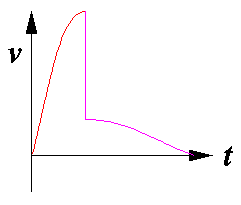 A red sphere (of mass m) and a blue sphere (of mass 5m) are attached to the ceiling by massless strings of identical length forming twin pendulums of length L. The red sphere is drawn to the left so that its center of mass has been raised a distance h and is then released. As the red sphere moves back through equilibrium it hits and adheres to the blue sphere. The combined system swings to the right, eventually reaching some maximum height before returning to equilibrium.
