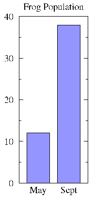 Now it is clear that there were something like 3 times more frogs in September than in May. Of course, it is unlikely to have been exactly 3 times more frogs... a confusing fractional frog will generally be required. If your aim is accuracy rather than art, your proper display choice here is an old fashion bar chart: