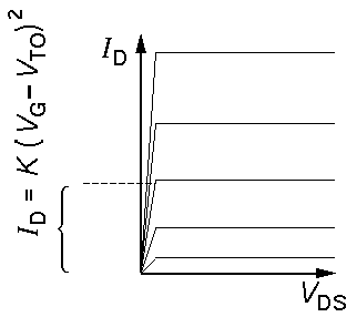 The small VDS "ohmic" region and the small ID "saturation" region are available.