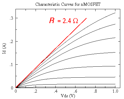 Particularly for MOSFETs it should be noted that in the small VDS region -- before the saturation region -- the MOSFET characteristic curves look like nearly straight lines through the origin. VG controls the slope of these lines, so the MOSFET acts like a variable resistor with a voltage (VG) control. Here is a plot of this region for the above 2N7000: